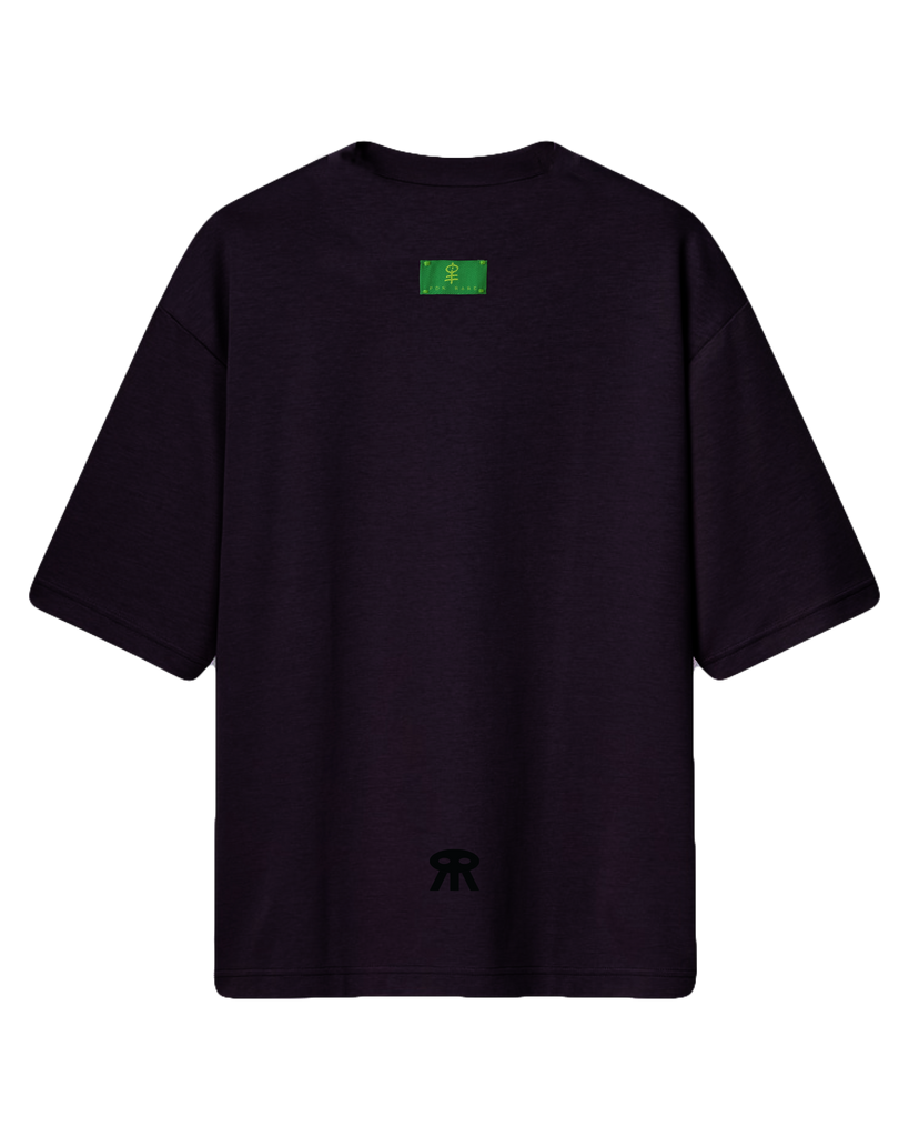 printed Black Graphic T-Shirt front, Sewing label on back of T-shirt